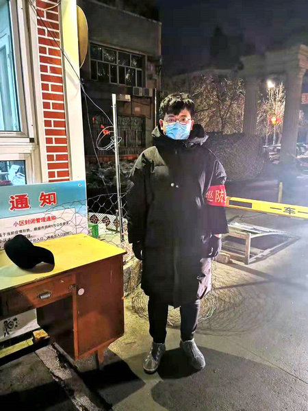 冷风中,夜幕下,坚守在浏园安居社区卡点值守的是我院内四党支部的党员志愿者王宏宇和黄金凤。他们认真的核查进出的人员及车辆,测量体温,检查出入通行证,配合社区人员摸排涉鄂人员,巡查重要场所,一丝不苟,积极主动的做好抗疫宣传工作,充分发挥了党员先锋模范带头作用。除了他们,内四支部的周洁信、刘洋、董春雪等党员也都在各自社区积极承担着疫情防控工作。
