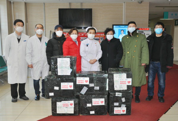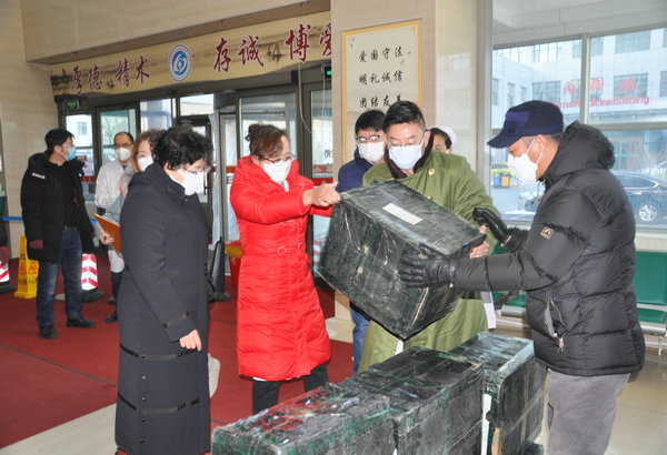 身在海外,心系祖国。2月17日上午,一批来自俄罗斯圣彼得堡的爱心医用防护物资—7箱一次性医用口罩不远万里邮寄到了我院,这批饱尝深情厚谊的防护物资是我院普外科护士长冯春玲之子彭程先生捐助的,为感谢彭程先生的博大爱心和家国情怀,我院在外科楼一楼大厅举行了捐赠仪式,院长张淑英、副院长赵玉环及相关科室负责人参加捐赠仪式。