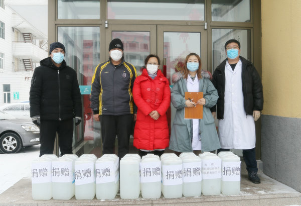 2月21日上午,上药科园信海医药有限公司顶风冒雪前来为我院捐赠10桶500斤消毒液,助力我院新冠肺炎疫情防控工作,副院长赵玉环等出席捐赠仪式。