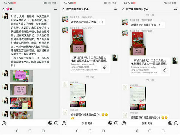 医院出征武汉、哈尔滨医疗队员们的感谢