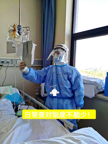 2月2日晚抵达武汉,做了一天的培训和调整,2月4日正式接管协和医院西院6楼,医护团队全部由我们黑二队接手,熟悉环境、准备物资、熟悉仪器、备床单元,16时迎来第一批17名重患,由此开始了6楼的支援工作。待6楼工作逐渐步入正轨,我便把6楼的护理工作交给了赵护士长(护理副组长),并安排岳波辅助她的工作。