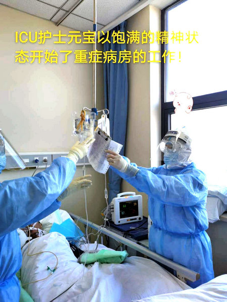 我带领12名icu护士去了2楼的重症病房支援,说实话很累,和病区的工作不能比,重患太多护士太少,每名护士要看4-5个病人,密集护理操作多,危险操作多,可是我们的小天使们都坚持下来了,没有让我失望。