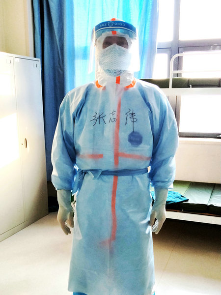 由于初来乍到,环境和工作流程还比较陌生,对老师们的工作也不是很了解,所以就咨询起来:你们多长时间休息一次啊?没想到老师们却笑着说:我们就没休息过,不过你们过来就好了!我又问到:那你们工作一次多长时间啊?老师们说有的八个小时,有的十多个小时,没准。那你们何时下班回家啊?老师们还是笑着回答:回家?疯了,万一感染了家里人怎么办?我们下班后有的去宾馆,有的留在医院休息。