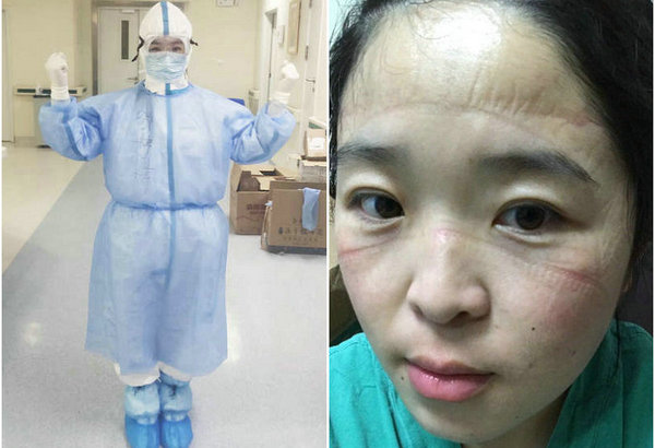我们每天的工作跟平时在科里做的都一样,但是穿着隔离服做着基本的工作,都是力不从心,但仍要强迫自己努力去适应。当带着满是雾气的护目镜为患者扎针时,担心不能一阵扎好,但听到的确实患者对我们说:“孩子没事的,辛苦你们啦,你们就跟我的孩子一样大。”说的我心里暖暖的。