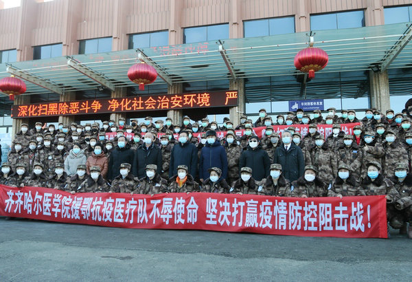 省、市及医学院领导与齐齐哈尔医学院援助湖北医疗队队员合影