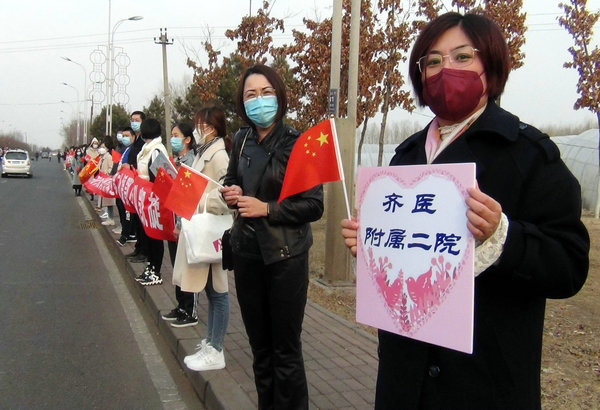 3月30日16时,来自武汉的飞机在三家子机场缓缓降落,我院38名援助武汉医疗队员平安凯旋。黑龙江省委副书记、省委教育工委书记陈海波,省卫健委主任魏新刚,市领导何晶、郭晓峰、孙炜航、刘艳芳,齐齐哈尔医学院党委书记顾长虹、院长赵炜明、副院长毕红霞及附属第一、第二、第三医院领导干部职工到机场迎接。