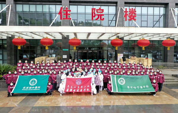 黑龙江省第二援鄂抗疫医疗队员圆满完成支援任务与武汉协和医院西院同仁合影留念