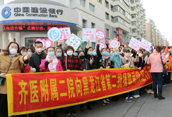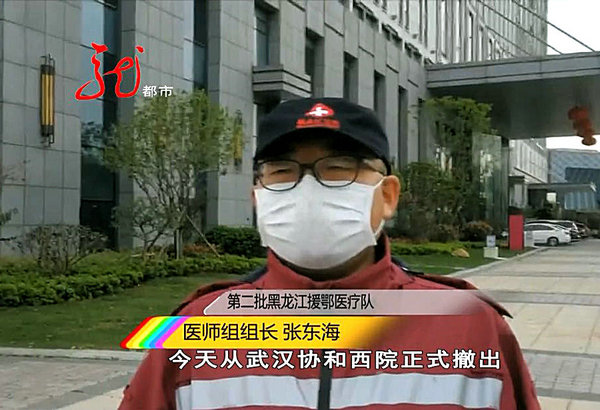 张东海主任说,在举家团圆的春节,武汉疫情牵动全国人民的心,更深深触动了广大医务工作者的心。放弃休假,逆行千里,投身抗疫一线,做好了被感染甚至牺牲的准备,在防护服里面是我们赤诚的心,防护服外面我看到了一双双渴望的眼,当病魔被赶走,我疲惫的身躯忘记了微笑,当有生命逝去,泪水会潸然落下模糊了双眼,即使是看透了生死的重症医生也无法释怀。截至3月28日,黑龙江省第二批援鄂医疗队整建制管理武汉协和医院6楼西病区,经过55天奋勇拼搏,现有住院病人7人全部转到12楼东侧集中收治病区。医疗队累计收治新冠肺炎患者112例,其中危重症27例,重症84例,治愈出院81例。另外由危重转为轻症移送到雷神山医院等继续接受治疗的患者8人,转科6人。无一差错事故发生,医疗队员“零”感染,广受同行及患者好评。今天,我们完美收官、胜利凯旋。越过山峦沟壑走下飞机回到家乡的那一刻,更让我心潮澎湃、百感交集,一片片欢呼雀跃、一束束鲜花锦簇、一声声暖心问候,顿时让我泪目,激动喜悦的心情无以言表,置身在这盛大隆重的礼遇当中,在深感不安与幸福的同时,更加强烈感受到了党和国家对医务工作者的敬重、爱护和褒奖,赋予了我们这些普通医务工作者英雄的礼遇和荣光。为国家担责、为武汉拼命,为家乡争光,无憾!