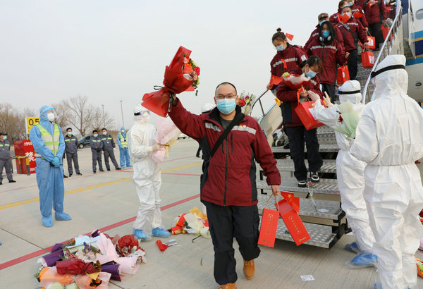 3月30日16时30分,黑龙江省第二批援鄂抗疫医疗队员乘坐包机如期抵达,面对省、市、齐齐哈尔医学院及三所附属医院盛大的欢迎仪式,医师组组长张东海、护理组组长颜红霞分别表达了感受和心声。