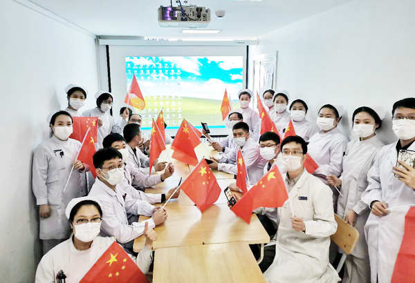 看似普通的早会,但意义特殊,大家一一对广瑜表达了自己的关心和思念之情,家人的慰问和关心,似乎看到广瑜眼中闪动的光亮,没错,这就是齐齐哈尔医学院附属二院的医院文化,普外科团结的凝聚力影响着我们,我们每个人都是大家庭不可或缺的一员,我们都是祖国母亲的儿女,深深地表达了我们对祖国的爱意。(撰稿:普外科 王松)