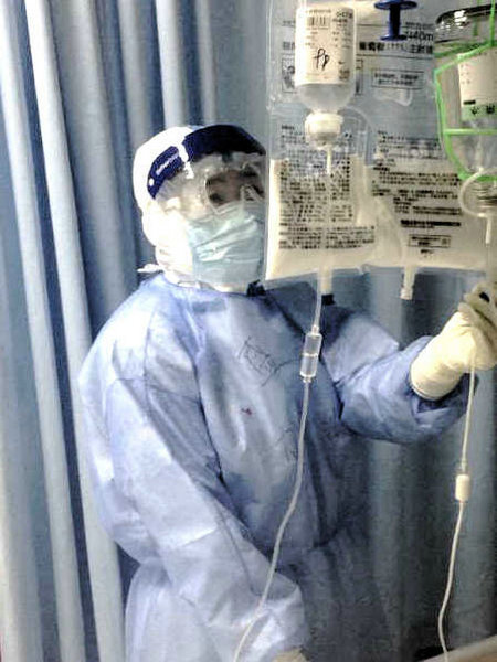 到武汉的第二天,盛辛就马不停蹄的开始进行了穿脱防护服的培训,练习。经过两天的努力练习,2月6日她就进驻了武汉协和医院西区六楼西病区,开始了救助患者的工作。