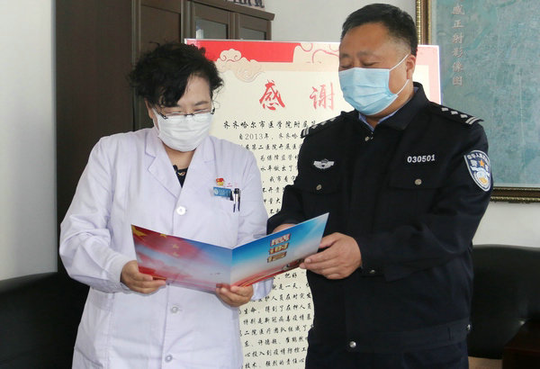 齐齐哈尔市公安局监所管理支队党委书记、支队长李宝舟向我院赠送感谢信