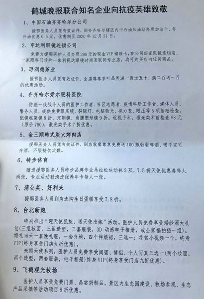 鹤城晚报联合17家鹤城知名企向我院援助武汉医疗队员送温暖