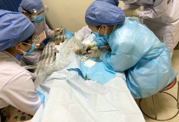 血液风湿科一病区医护人员为特殊患儿行PICC置管术