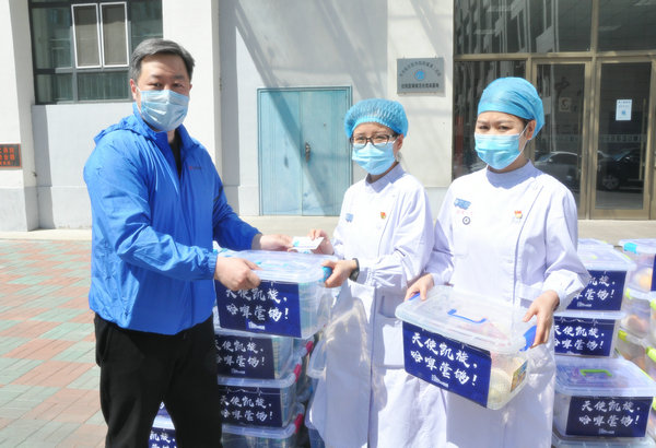 5月8日上午,百威英博黑龙江省事业部经理刘涛为我院38位援鄂战士送来了价值3万余元的慰问品,副院长赵玉环代表医院致感谢信,相关部门负责人出席捐赠仪式,孟庆爽和顾美佳代表援鄂队员接受了捐赠。