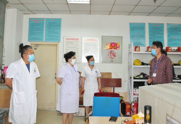 6月22日上午,院长兼党委副书记张淑英、党委书记丁国旭、副院长赵玉环组织带领保卫科、总务科等部门负责人,对后勤等部门进行节前消防、安全生产检查工作。