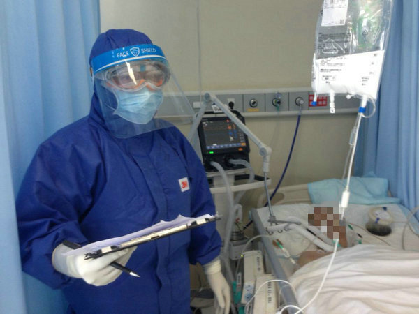 2月2日晚,黑龙江省第二批支援湖北医疗队抵达武汉,已过天命之年的李鹏主任接受了相应防护知识培训后,就投入战场,进入危重患隔离病房后,当时科室整体的情况复杂混乱,科室存在着治疗措施不规范、病床紧张等现象。面对这么复杂的情况,黑龙江省第二批援鄂医疗队重症治疗组共分三组,李鹏主任任第一治疗组组长,他当时的压力非常大,即要克服自己年龄大、高血糖高血压慢病的折磨,还要领导负责全组救治重患;从开始到结束,在李鹏主任所在的治疗小组收治的重危病人占整个病区70%以上,李鹏主任介绍:“新冠肺炎与普通病毒性肺炎的治疗不一样,病情变化极快;上午查房很好,下午有可能要上呼吸机,传染性极强,患者胸部CT显示,病症变化极快,常规方法治疗效果差;我们治疗小组及时调整诊疗方案,分床到人,一人一方案,重症病人24小时医护守候。呼吸衰竭病人马上无创通气,2小时不缓解,气管插管上呼吸机,明显降低了死亡率。”李鹏主任在不上战场的休息时间,和医疗队员们一起讨论研究危重病人的治疗方法,集思广益,尤其第6.7版新冠肺炎指南发布,加强了中医中药临床应用,中药开始在临床中大量应用,随着时间的推移,在多学科共同努力下,李鹏主任所在的治疗小组许多危重病人转为普通,普通转为轻症。看着越来越多病人出院(超过100余例),李鹏主任心情也由当初的灰暗渐渐转向了晴朗,心中充满了希望和斗志,他坚信自己一定会拿下这场战疫,用全部心血救治武汉重患、挽救无数生命,为武汉这片热土撒下辛勤的汗水。