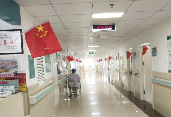 金秋十月好心镜,举国欢腾迎国庆。新中国成立71周年,祖国经历了风风雨雨,才迎来如今的盛世繁华!为营造庄严喜庆、文明和谐的国庆、中秋节日气氛,增强广大职工的爱国热情和凝聚力,值此中秋、国庆双节来临之际,我院内、外悬挂鲜艳的五星红旗,处处洋溢着喜迎节日的浓厚氛围。广大职工更是用别样的“中国红”,衷心的祝福祖国母亲生日快乐!