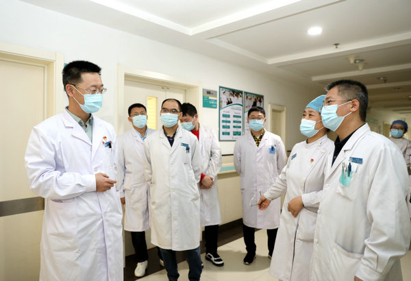 武立刚院长、丁国旭书记、鲍红光副院长与科室医护人员深入探讨学科发展建设情况