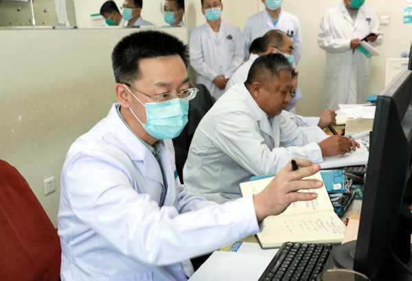 普外科副主任王峰向武立刚院长详细介绍病人诊疗情况