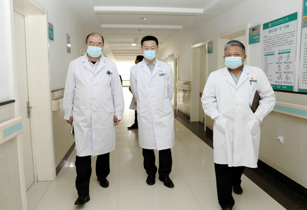 党委书记丁国旭、院长武立刚、副院长鲍红光到外科病房楼实地走访调研
