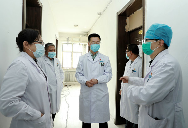 10月14日上午,党委书记丁国旭、院长武立刚、副院长鲍红光、赵玉环带领医务科、感染科、总务科等科室负责人前往发热门诊走访调研。