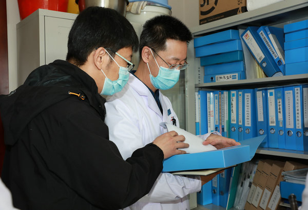 武立刚院长查阅设备科采购设备归档资料
