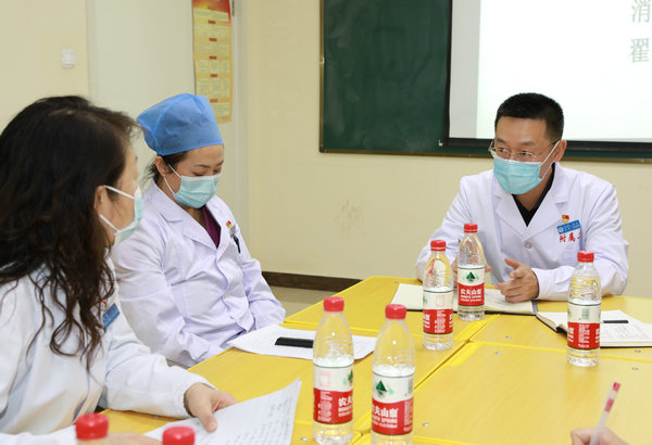 在消化科示教室中,消化内科、肾内科、内分泌科、血液透析室、全科医学科、CCU等科室负责人向院领导汇报了近三年的科室发展现状、取得的成绩以及下一步工作思路。武院长、鲍院长针对科室特点,进一步理思路、明方向、找不足,提出了符合实际的解决对策。武院长强调,当前形势下,临床科室亟需精细化管理,要通过严谨科学的数据分析、发现规律、总结经验,切实提高门诊患者的精细化管理。另外,内分泌代谢等临床科室还要加快解决优势病种难点问题,打造“专病专治”,提升专病诊断治疗水平,在内分泌代谢等疾病上,树立特色专病品牌,加强交叉学科、多学科合作,探索开展多学科“一体化”诊疗服务新模式。随后,院领导围绕超声胃镜、动静脉瘘透析、ERCP胆管取石、门诊慢病开方等科室运营当中遇到的一些困难及问题进行深度交流。
