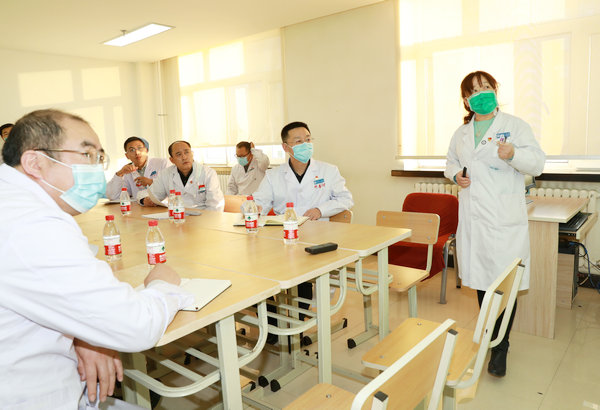 院长兼党委副书记武立刚、副院长鲍红光等听取血液科工作汇报