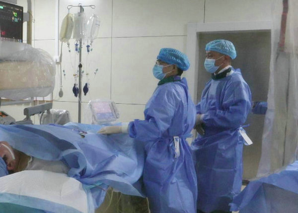 哈医大二院李永利教授现场进行密网支架成形术治疗梭形动脉瘤手术示教