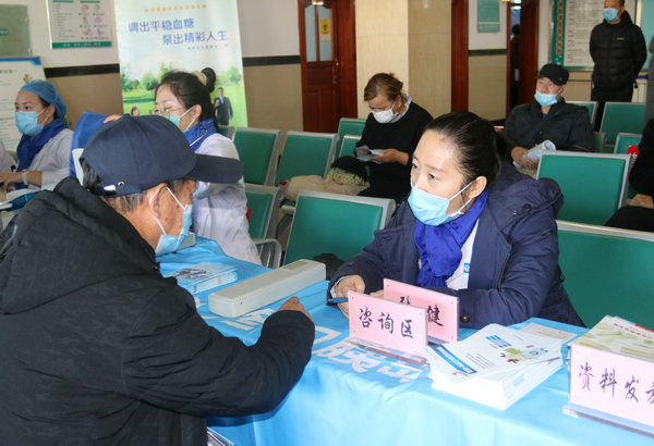 活动现场,内分泌科、保健科等医护人员为糖友们耐心为每一位居民进行血压、血糖等检测,讲解科学膳食和用药知识,对患有严重疾病的居民给与了深入检查指导,提出诊疗建议,发放健康宣传手册。张健教授以糖尿病防治理念、糖尿病患者的科学生活方式等多角度为百姓进行科普宣教。