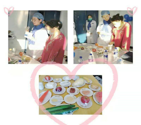联谊会上,内分泌科主任张健教授致辞,她表示: 医患一家亲,患者恢复健康是所有医护人员的期许,也是医患共同努力的结果,内分泌团队深感责任和使命,会用爱心,耐心,细心,精心对待每一位患者,她还详细介绍了今年糖尿病日的主题:“护士与糖尿病”的意义。患者代表表示:对内分泌科治疗效果的认可以及对医护人员的感谢,同时糖友相互沟通学习,彼此分享降糖经验。宣教护士周敏通过有奖知识问答以及食物模具搭配营养餐的小游戏为大家传授很多糖尿病相关知识,让大家在轻松的氛围下掌握学习,田浩妍护士甜美的歌声,糖友张叔叔的倾情演绎,你来比划我来猜小游戏中老两口的默契配合、母子间的心有灵犀、好姐妹的心领神会为联欢会增添了亮点,大家享受这美好的下午时光,最后在歌曲感恩的心为医患联谊活动划上圆满的句号,大家收获满满,在抗糖路上,我们医患携手同行,一起走过春下秋冬,期待联谊会下次再相聚。