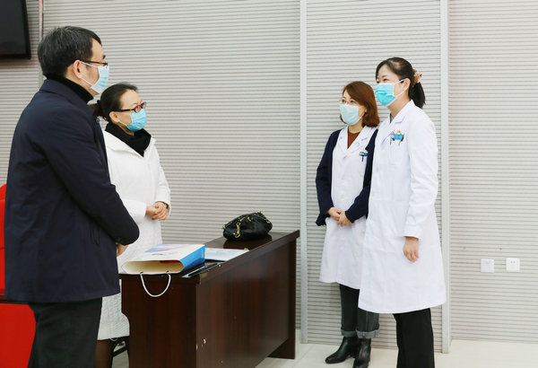 副院长刘晖(右一)等与广州医科大学附属第六医院(清远市人民医院)工作人员亲切交流