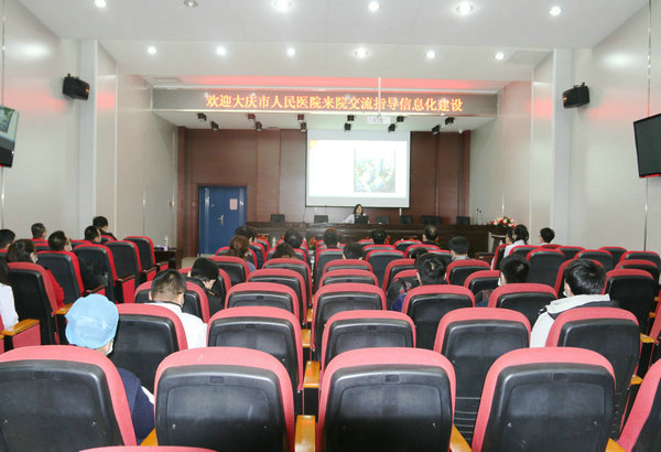11月12日上午,大庆市人民医院副院长苏凤荣等一行20余人来院参观交流信息化建设,院长兼党委副书记武立刚、副院长赵玉环及相关科室负责人进行热情接待。我院在临床技能中心多功能厅组织召开信息化建设交流会,网络信息中心主任郭艳宏介绍我院信息化建设工作。