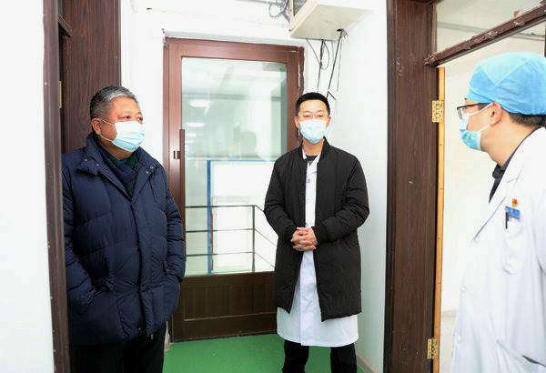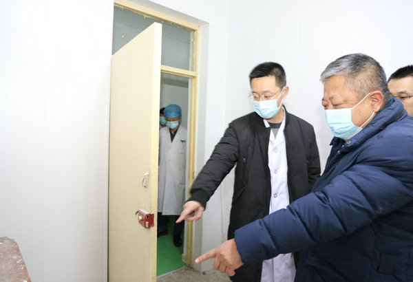 党委书记丁国旭、院长武立刚等领导检查发热门诊改造工作