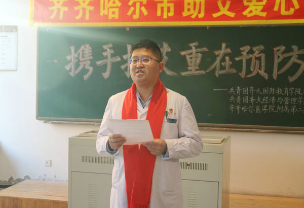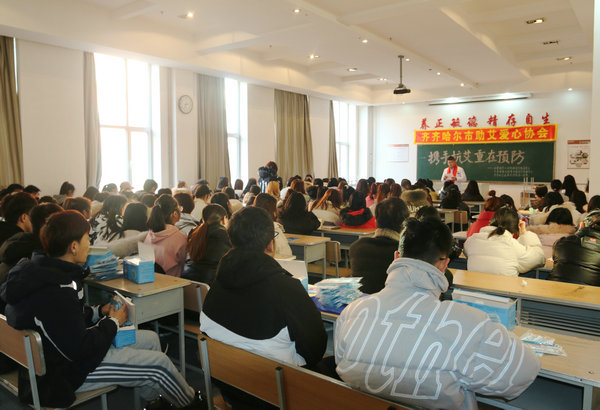 下午,肛肠外科主任应邀到齐齐哈尔大学国际教育学院作预防艾滋病专题讲座,国际教育学院党委书记孙海丽致辞,120余名学生参加讲座。