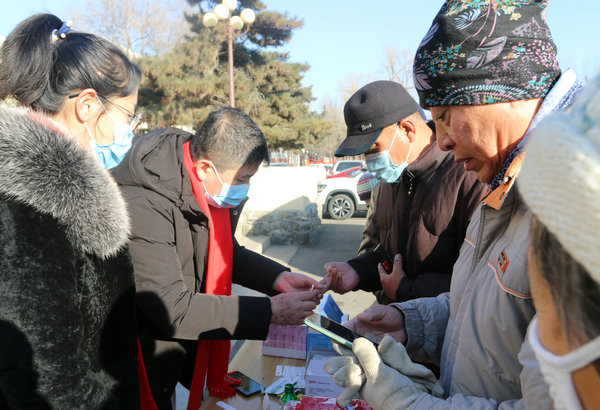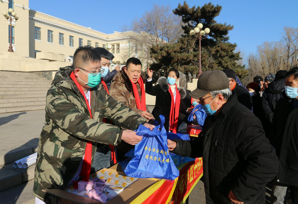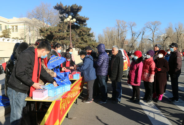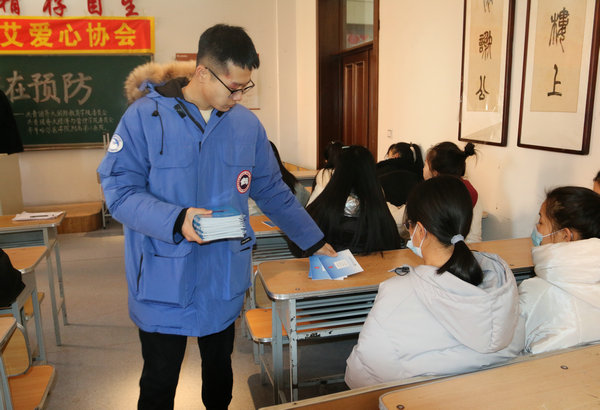 市助艾爱心协会会长、肛肠外科主任周扬为百姓发放防艾工具
