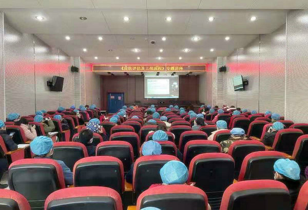 12月29日下午,护理部在临床技能中心一楼多功能厅组织学习了由哈尔滨医科大学附属第四医院造口伤口门诊负责人、普外三病区护士长张霞主讲的《皮肤评估及上报流程》的线上专题讲座,护理部主任孙晶主持会议,各临床科室压力性损伤小组成员共计98人参加讲座。