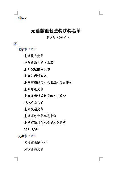 2018-2019年度全国无偿献血促进奖单位奖获奖名单