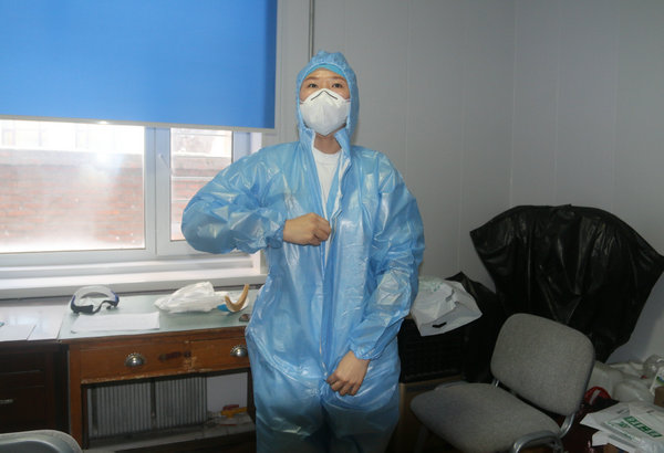 发热门诊护士长王广瑜演示穿脱隔离服