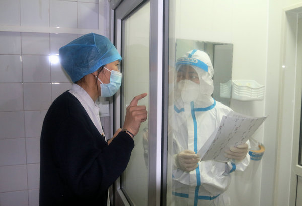 发热门诊护士长王广瑜与科室人员沟通工作
