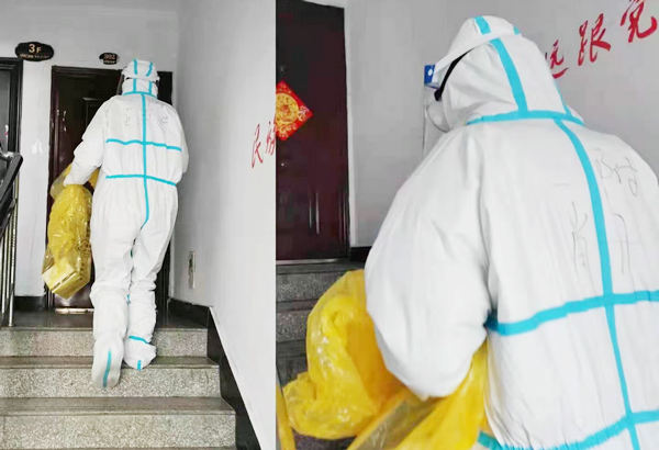 1月21日我们整装待发,分组前往近100家居家隔离点,陌生的环境老旧的小区,给我们的工作增加了困难,我们全副武装,开始了核酸采集工作。上霜的护目镜和面屏,也没有阻挡我们前进的步伐,多次在好心居民的指导下我们才找到各家住所,由于工作错过了午饭时间,每组队员都爬了近120个台阶,导致体力严重下降,但我们强忍泪水,怕弄花了护目镜。