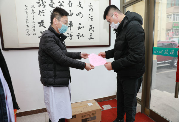 1月25日上午,真奥药业集团有限公司向我院捐赠120盒金银花口服液及180盒潞党参口服液。院办负责人孙超宇代表医院接受捐赠并向该公司致感谢信。