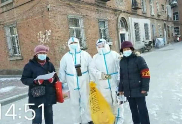 我所负责的片区比较分散,并且每栋楼排列分布不清,经常因为找不到每户的地点弄得晕头转向,但在社区里遇到两位热心大娘,她们担心我找不到每户的地点,亲自全程陪我和志愿者爬楼入户。这两位大娘都是70岁老人,其中一位大娘还患有类风湿性关节炎,行动不是很方便,看着她们陪我爬楼梯,帮我们敲门通知检测,我内心特别感动,每到高楼层的住户,我都会让她们在楼下等我们,但大娘们不停的关心我们,都会说“我熟,我给你们带路,遇到不配合的人家我帮你教育他们,我们岁数大了,现在就剩给你们领个道儿的能耐了,我们慢点走,不碍事的。” 5个多小时里,大娘带着我们连续不断地走了68户,在这期间,她们没喝水,没吃饭,没上厕所,没休息。工作结束后,两位大娘还特意制作了小视频,感谢我们医护人员前来支援富区的辛勤付出。