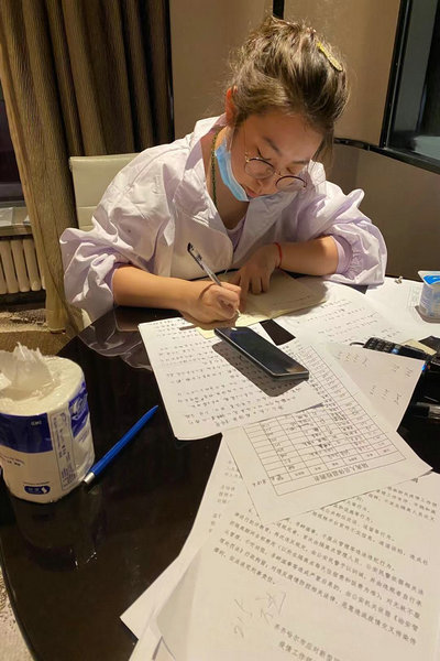 我和我的同事们以严谨、认真、负责的态度做好隔离点的各项工作。作为一名精神科住院医师,除了每天的日常工作,还负责询问隔离人员心理健康情况,有无不适症状等。几日下来,发现隔离人员有焦虑、失眠症状的人数较多,一边安抚隔离人员的情绪,同时鼓励有需要者寻求心理疏导及心理支持,另一边向上级领导请示,在隔离点开展隔离人员心理健康宣教工作,运用我所学的专业知识,开展新冠肺炎疫情防控宣传和心理健康教育,帮助隔离人员提升防控知识水平,减少因认知不足所致的恐惧,增强隔离人员自我心理调适能力,尽我所能帮助隔离人员度过难关,关心关爱他们的心理状况。在院领导和同事们的不懈努力下,我们的工作进展的非常顺利,我相信我们一定会圆满的完成任务,胜利凯旋。