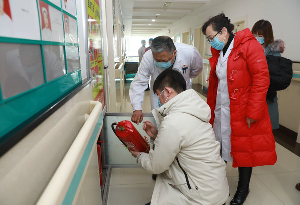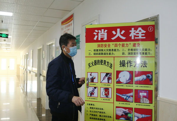 检查前,检查组在内科楼一楼大厅集合,党委书记丁国旭、院长兼党委副书记武立刚对本次检查的目的、意义进行了重点强调。丁书记、武院长指出,要高度重视本次节前行政暨安全大检查,切实抓好医疗护理、疫情防控、消防质量安全、防火防盗安全等工作,确保节假日期间的各项工作井然有序。要把在本次检查中发现的问题和不安全隐患迅速整改,严防各类安全隐患的发生,确保广大职工和患者度过一个安全祥和的春节。