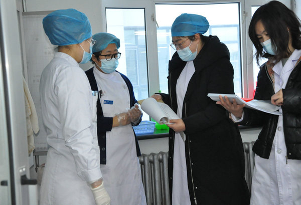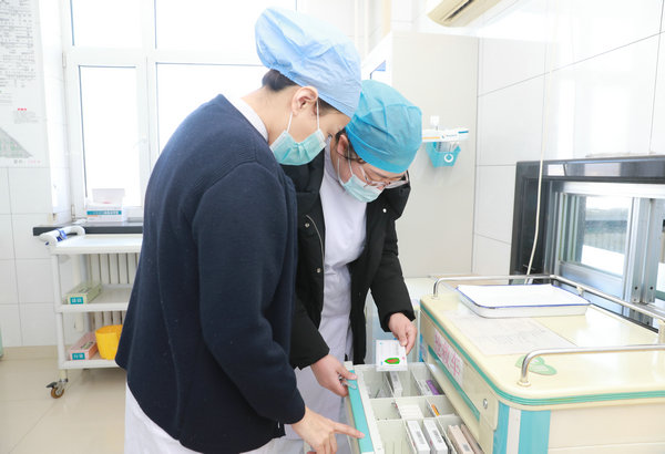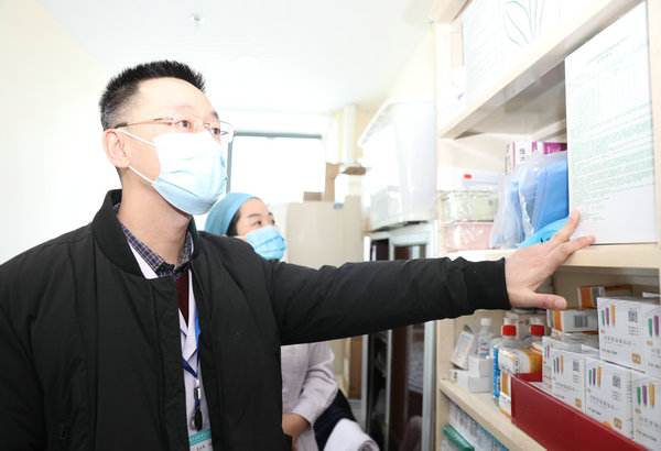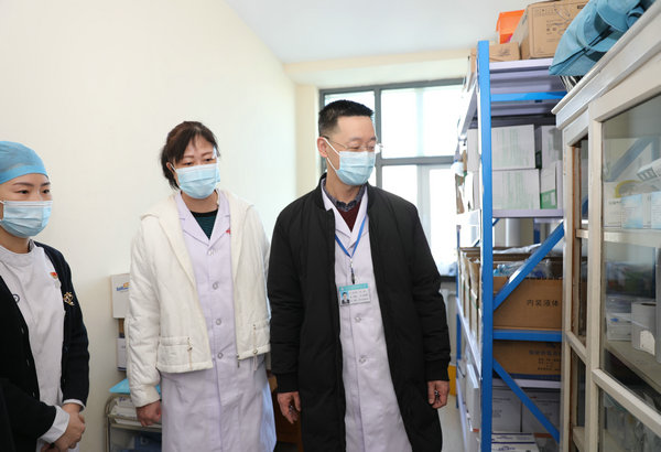 院长兼党委副书记武立刚检查内科病房楼治疗室药品
