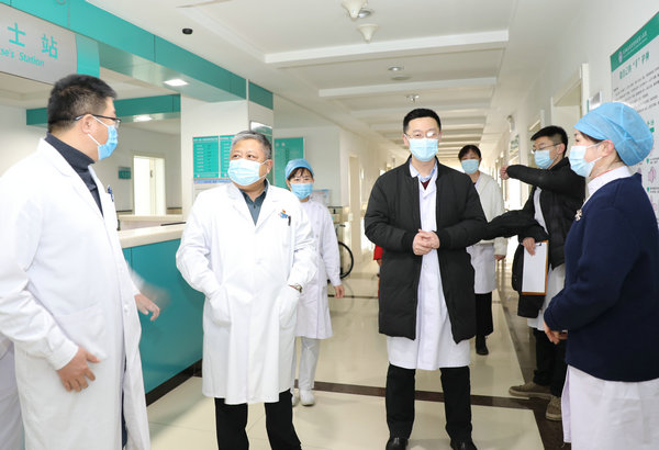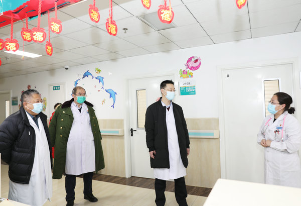 2月18日,春节假期后上班第一天,党委书记丁国旭、院长兼党委副书记武立刚、副院长鲍红光、刘晖、赵玉环带领院办、医务科、护理部、宣传科等职能科室负责人,对我院门急诊、内外科病房楼、发热门诊等地,进行节后首次行政大查房。