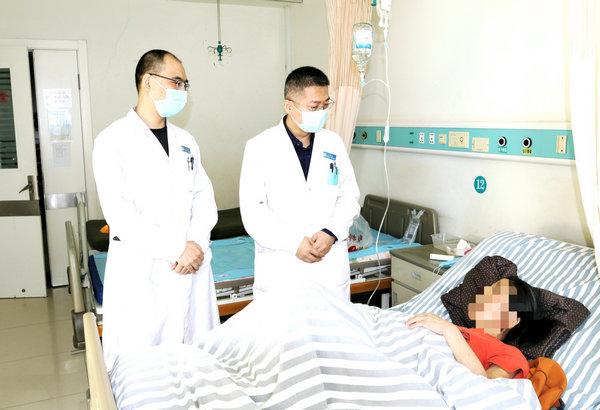 当路女士及其丈夫得知有治愈希望和机会的时候,激动得泪如雨下,路女士爱人突然跪下致谢附属二院的救命之恩,见此情景,王峰副主任和李元春副主任医师也非常感动,立刻将路女士丈夫搀扶起来,并告诉他放心,虽然路女士患的是罕见疑难病,但普外科一定会尽最大努力帮助路女士去除病因,找回健康。