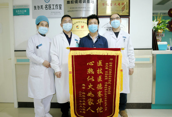 见到普外科医生护士们的强烈责任与担当,路女士及其爱人异口同声说:把生命交到你们手里,我们很有信心,无论成功与否,我们都感谢你们的救命之恩。